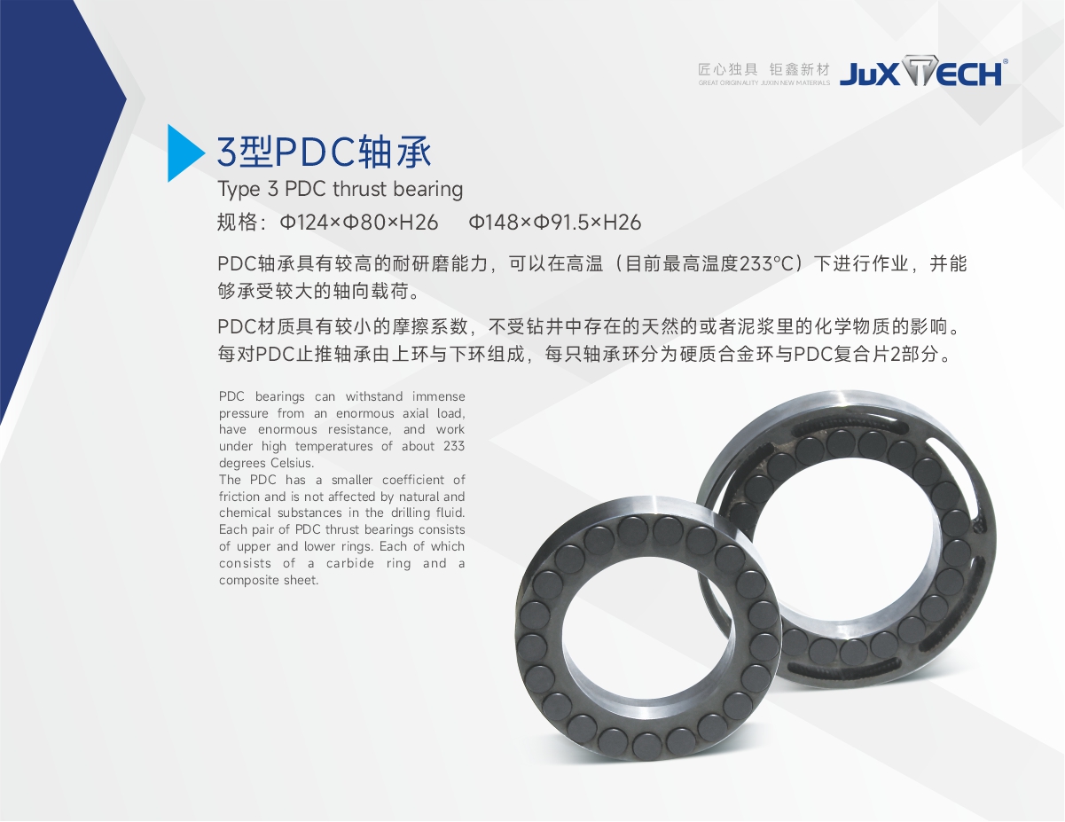 PDC軸承具有較高的耐研磨能力,可以在高溫(目前最高溫度233℃)下進行作業(yè),并能夠承受較大的軸向載荷。